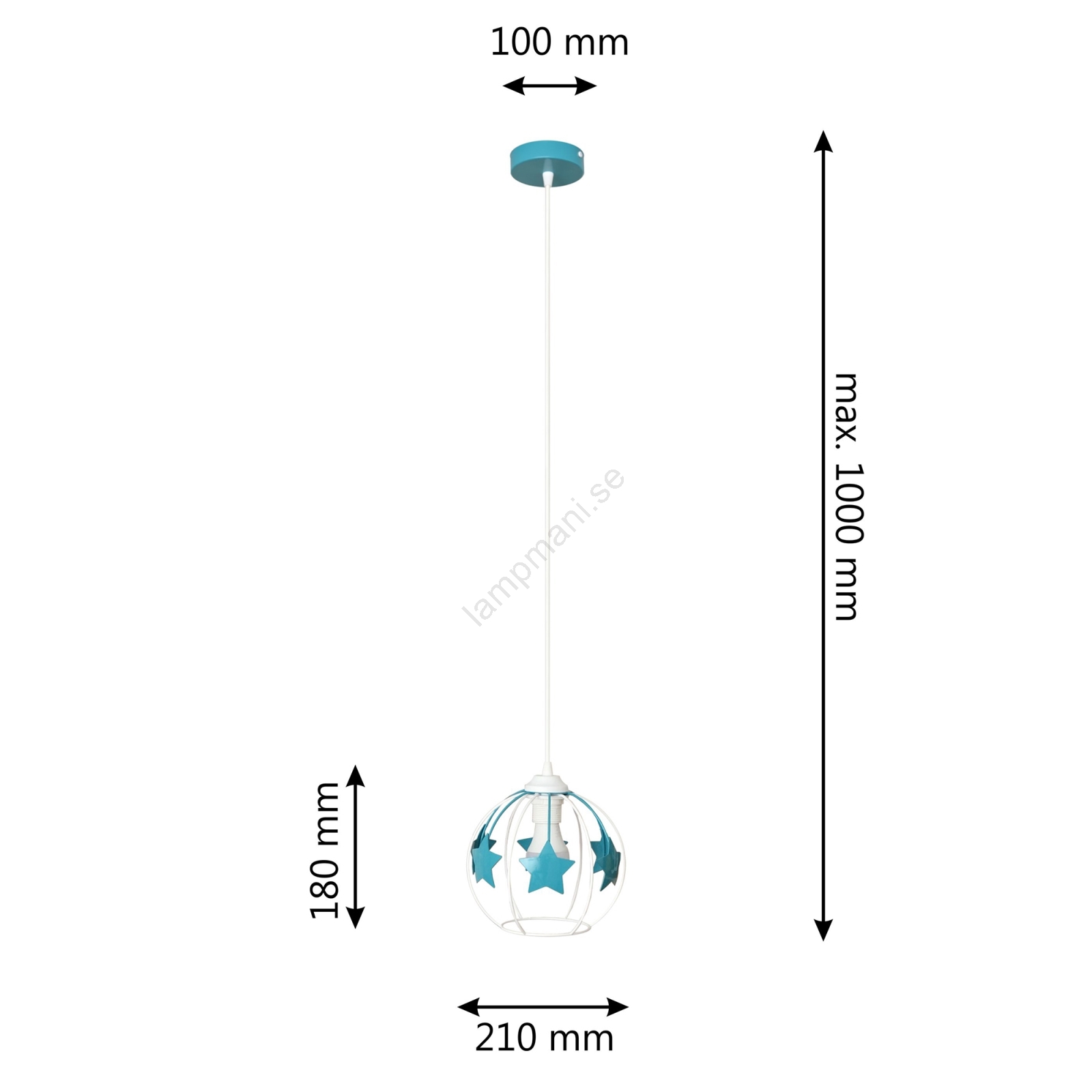 Hängande ljuskrona med textilsladd för barn STARS 1xE27/15W/230V turkos/vit kännetecknar snygg och funktionell design. En glödlampa med E27 lock är lämplig för lampan. Här kan du köpa andra glödlampor till förmånliga priser. Du kommer att få ett intressant tillägg till ditt hem.