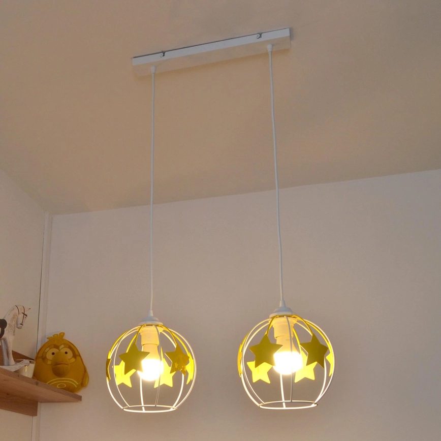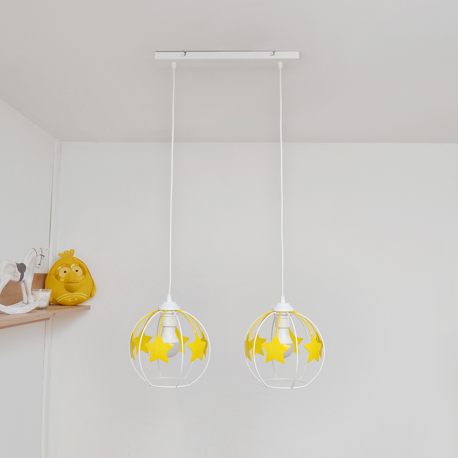 Hängande ljuskrona med textilsladd för barn STARS 2xE27/15W/230V gul/vit kännetecknar snygg och funktionell design. En glödlampa med E27 lock är lämplig för lampan. Här kan du köpa andra glödlampor till förmånliga priser. Du kommer att få ett intressant tillägg till ditt hem.