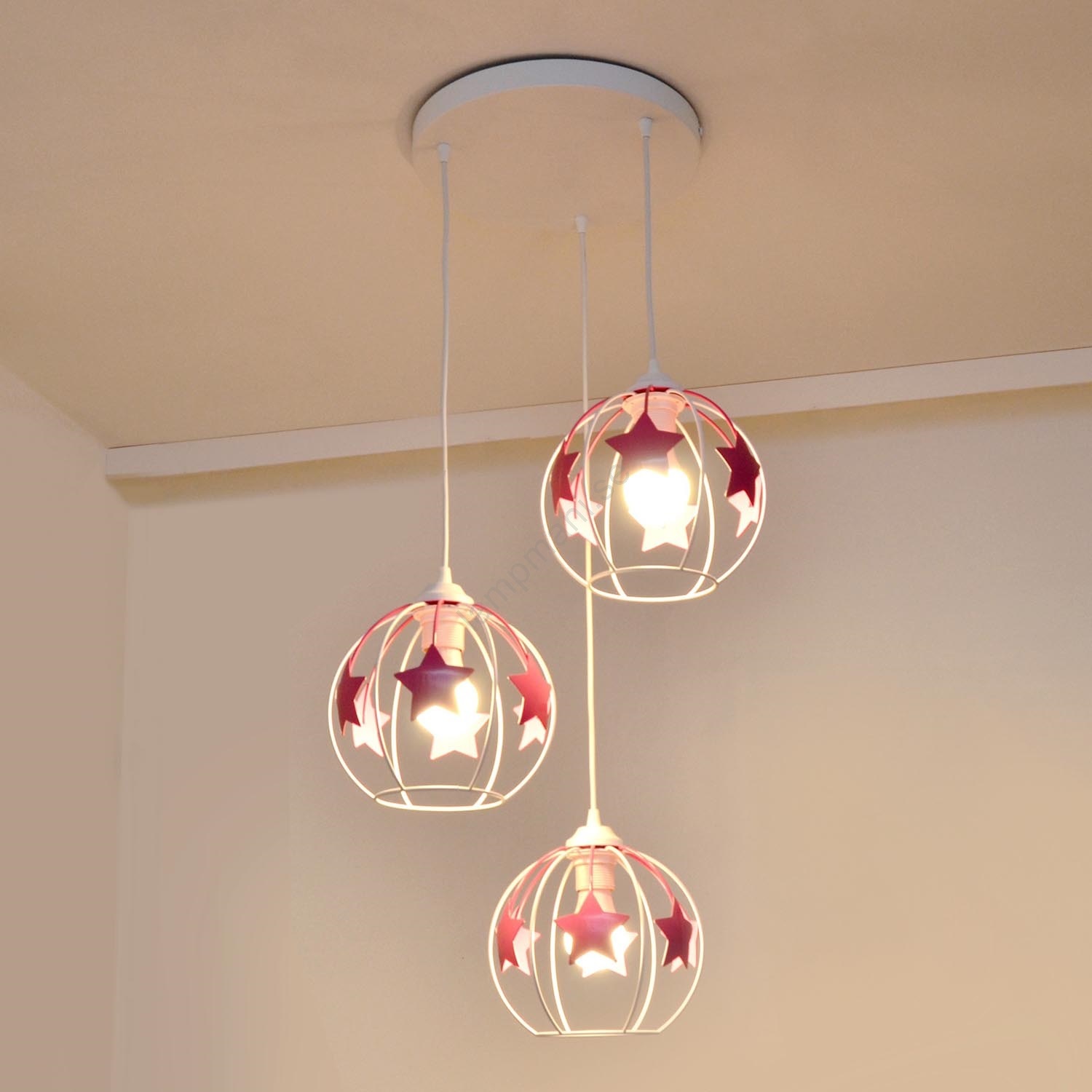 Hängande ljuskrona med textilsladd för barn STARS 3xE27/15W/230V rosa/vit kännetecknar snygg och funktionell design. En glödlampa med E27 lock är lämplig för lampan. Här kan du köpa andra glödlampor till förmånliga priser. Du kommer att få ett intressant tillägg till ditt hem.