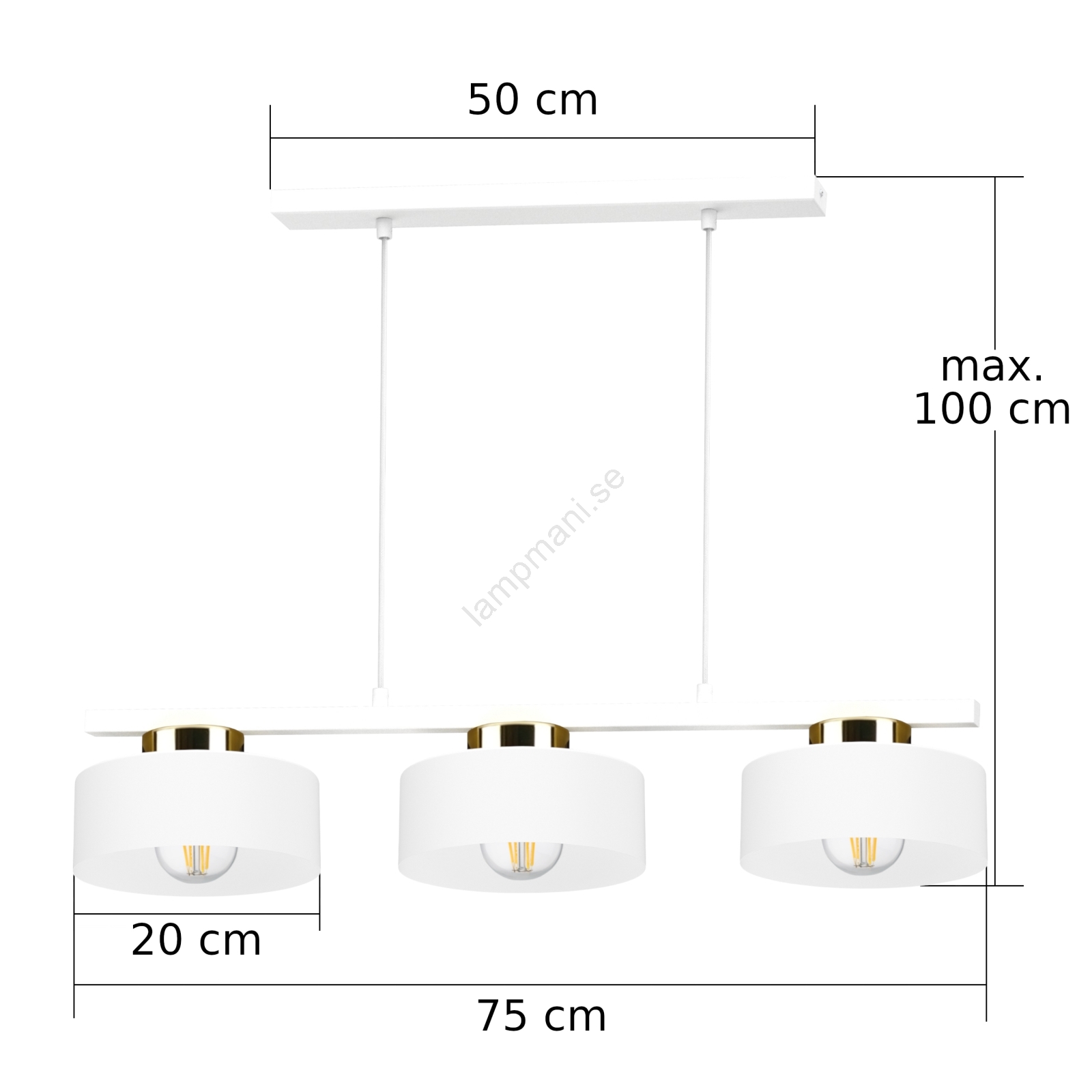 Hänglampa på kabel IGNIA 3xE27/60W/230V vit/guld | Lampmani