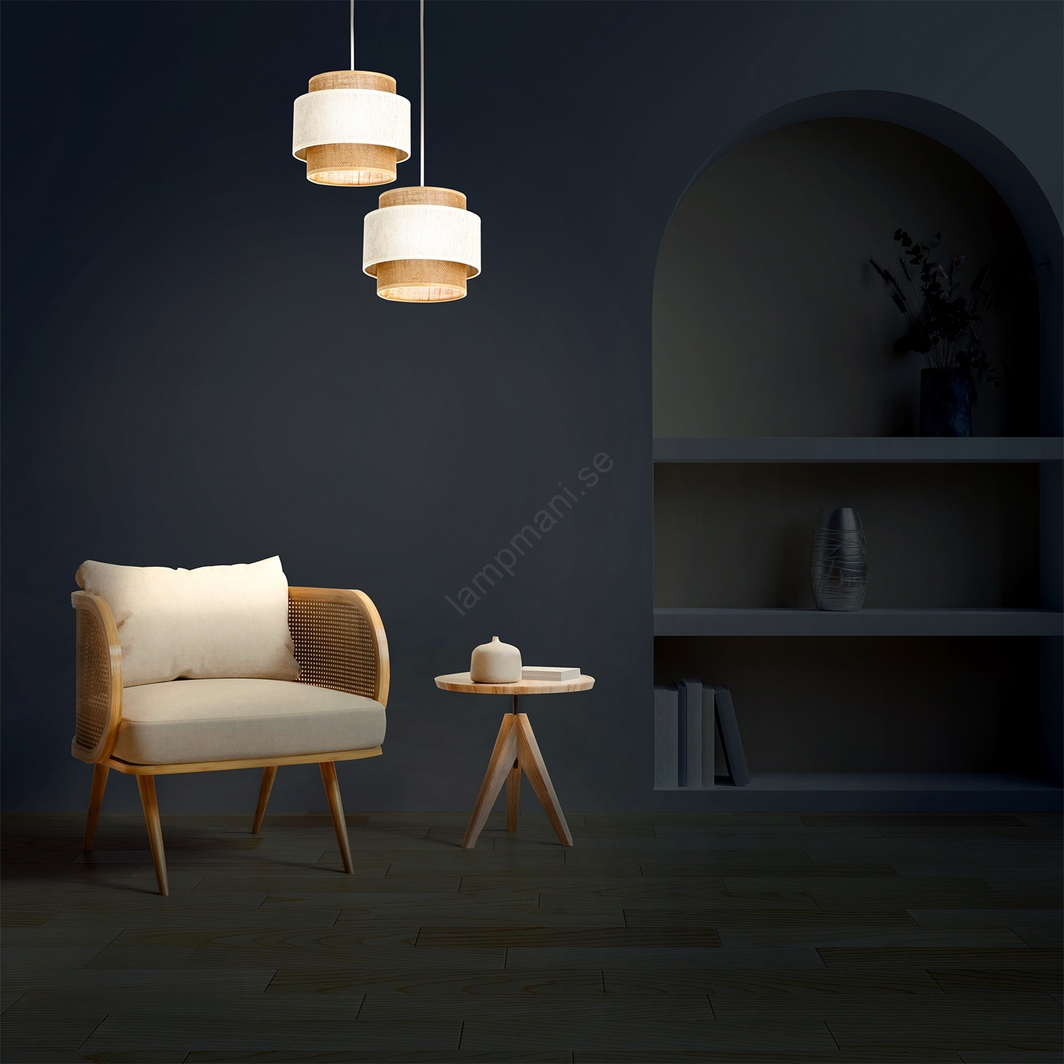 Hänglampa på sladd BOHO 2xE27/60W/230V krämvit/jute | Lampmani