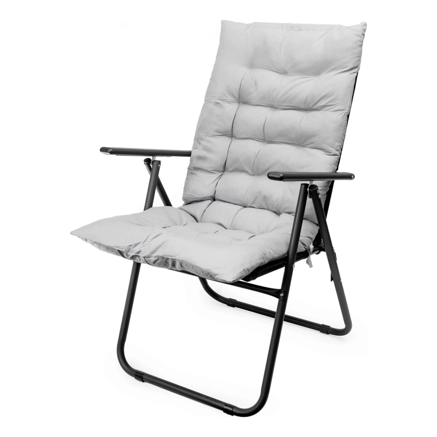 Hopfällbar campingstol med madrass svart/grå | Lampmani