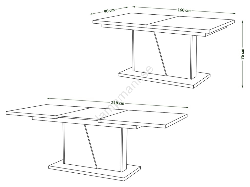• Med en 58 cm förlängningsskiva kan bordsskivan utökas upp till 218 cm (hjälps av högkvalitativa synkroniserade skenor).