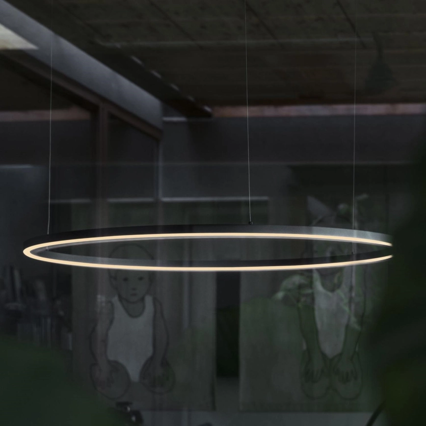 Ideal Lux - LED ljusreglerad ljuskrona på textilsladd ORACLE SLIM LED/28W/230V 4000K diameter 50 cm CRI 90 svart