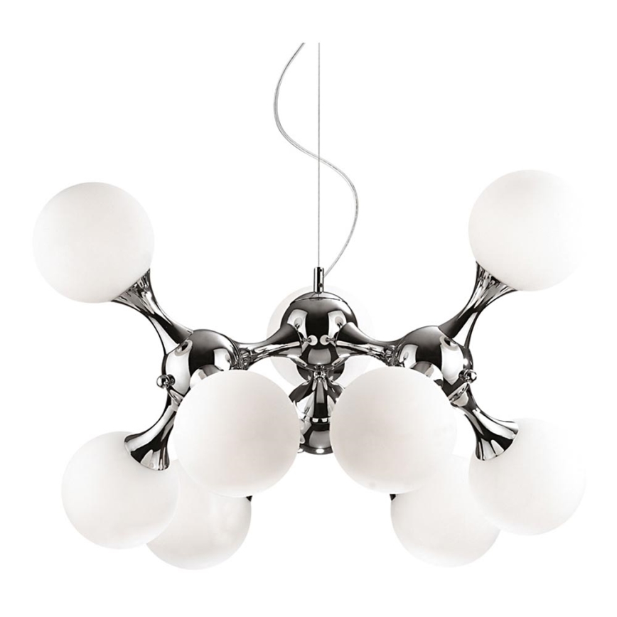 Ideal Lux - Ljuskrona med textilsladd NODI 9xE14/40W/230V skinande krom/vit kännetecknar snygg och funktionell design. En glödlampa med E14 lock är lämplig för lampan. Här kan du köpa andra glödlampor till förmånliga priser. Du kommer att få ett intressant tillägg till ditt hem.
