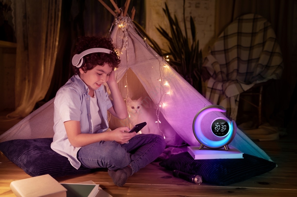 Immax 08981L- Dimmbar LED RGBW bordslampa med väckarklocka PEACOCK LED/20W/5V US | Lampmani
