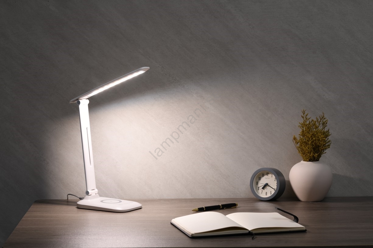 Dimmbar LED-skrivbordslampa med trådlös QI-laddning och USB LUMI LED/7W/230V vit