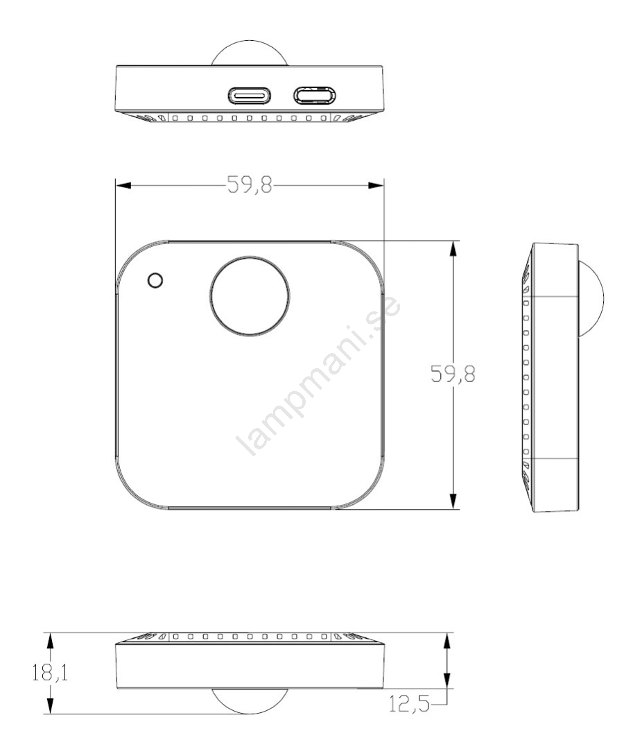 • Certifikat: CE Sensorstorlek: 59,8x59,8x12,5 mm.