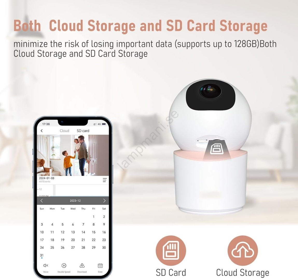 • Smart inomhuskamera med detektion av barns gråt, termometer, hygrometer och vaggvisor.