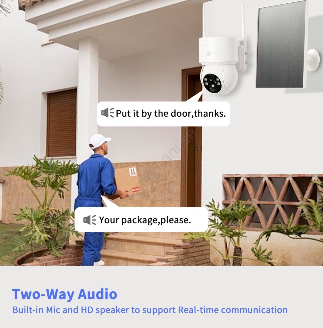• Kameran med batteri drivs av en 3W solpanel och styrs via appen Immax NEO PRO, tillgänglig på svenska och över 60 andra språk.