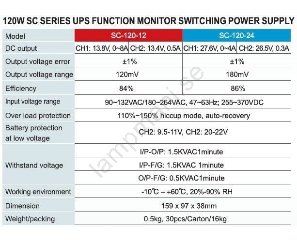 Industriell strömkälla + UPS CARSPA 120W/12V | Lampmani