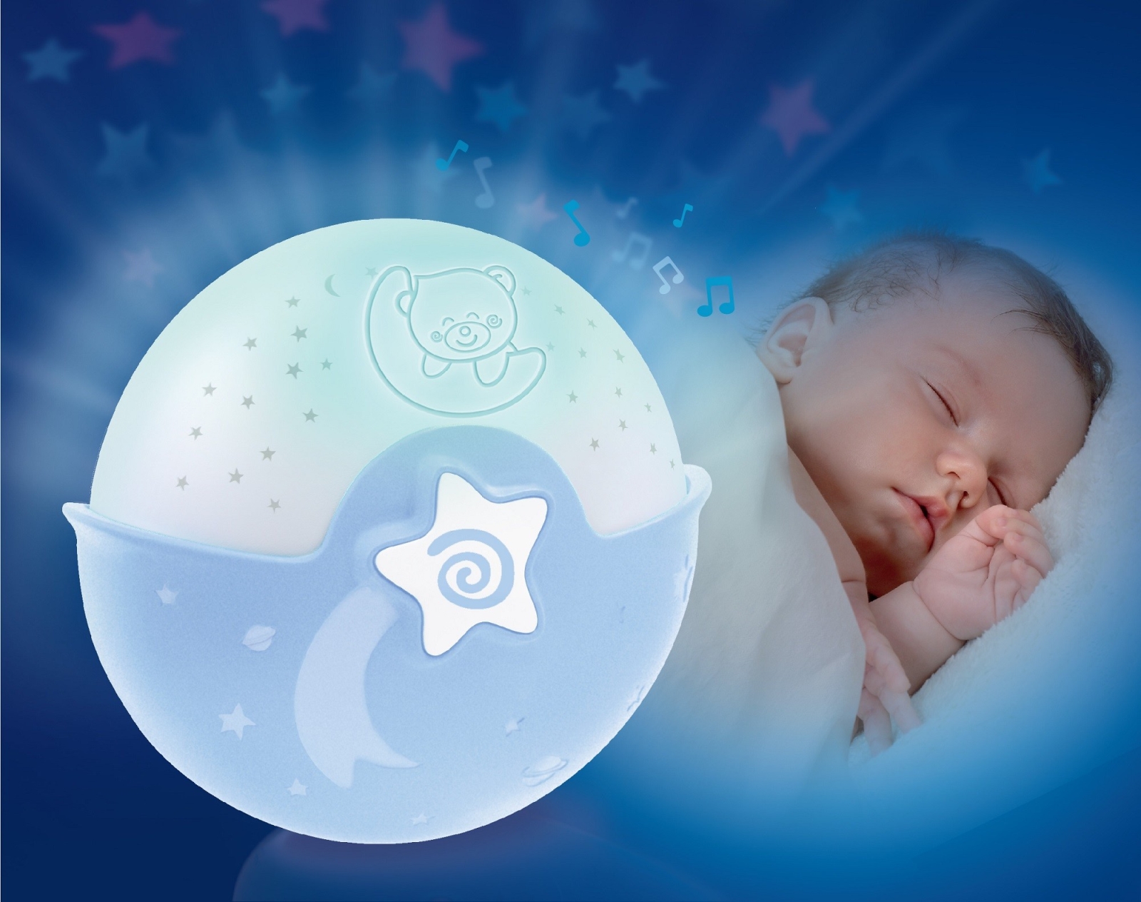 • Nattlampa med musik och ljusprojektor för att lugnt somna ditt barn.