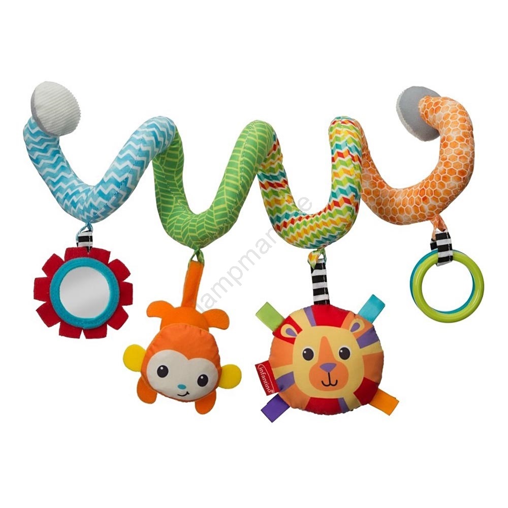 • Spiralen fästs enkelt på barnvagnens handtag, bilbarnstolen eller spjälsängen.