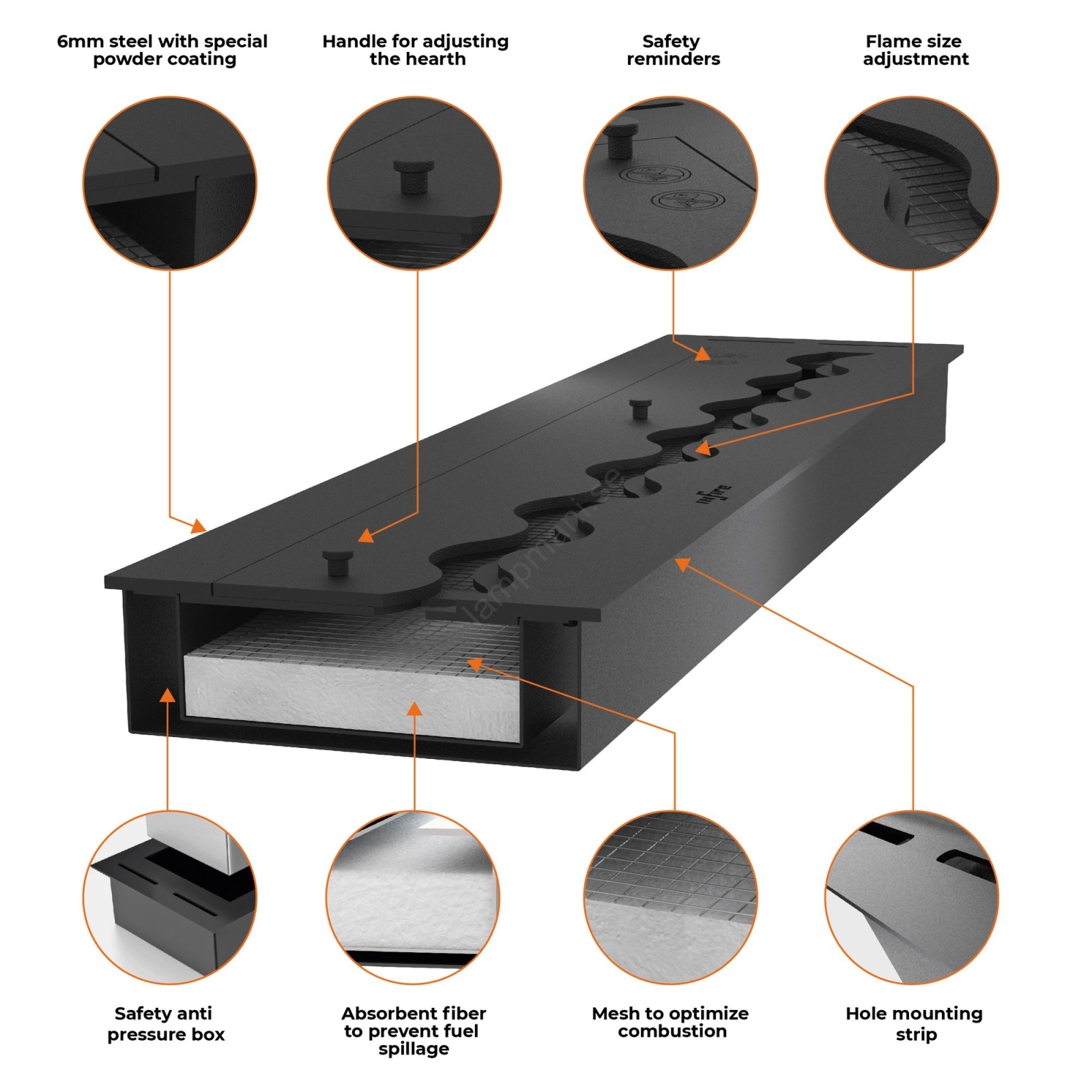 • Bioeldstaden är utrustad med ett skyddsglas med en tjocklek av 8 mm av härdat glas.