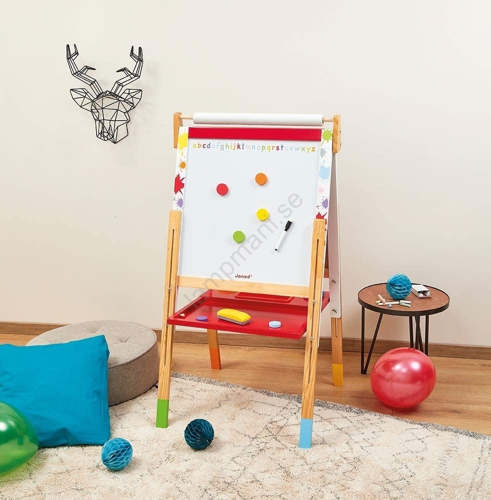 • En pappersrulle som kan fästas på tavlans ovansida ingår, vilket förvandlar magnettavlan till en ritduk och ger ännu mer kreativ underhållning.