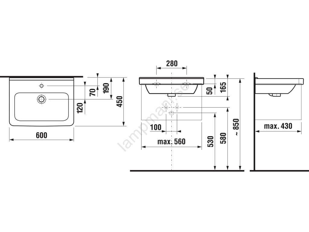 • Förpackningen innehåller handfat utan vattenlås och blandare.