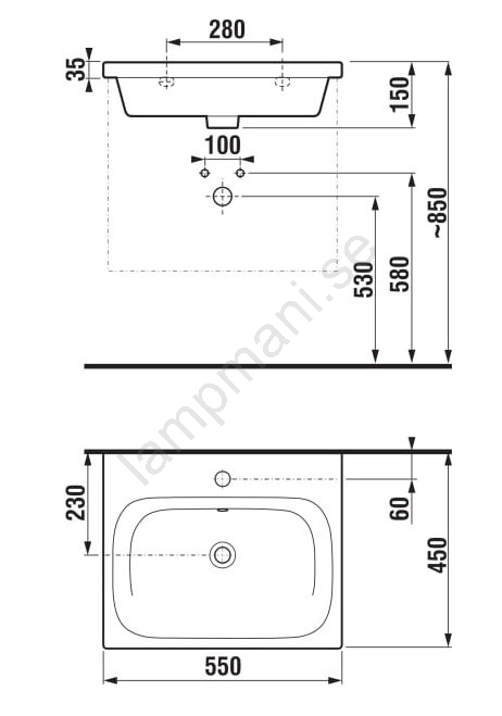 • Förpackningen innehåller handfat utan vattenlås och blandare.