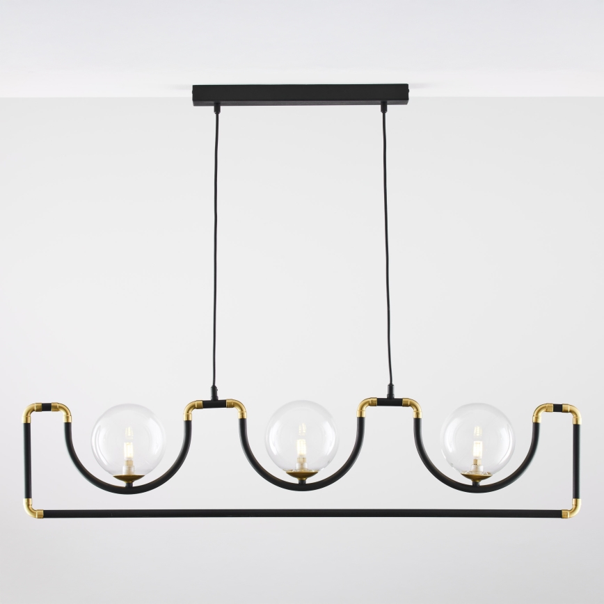 Jupiter 1990 - Ljuskrona med textilsladd HANZA 3xG9/10W/230V svart/guld | Lampmani