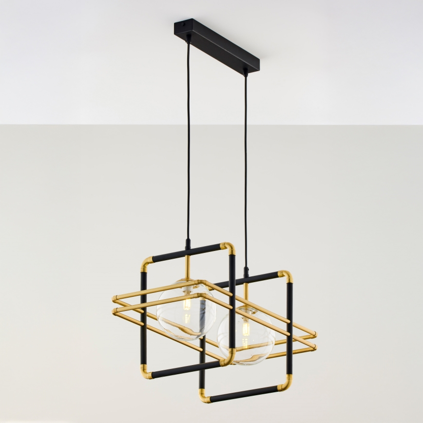 Jupiter 2029 - Ljuskrona med textilsladd FIORI 2xG9/10W/230V svart/guld/genomskinlig | Lampmani