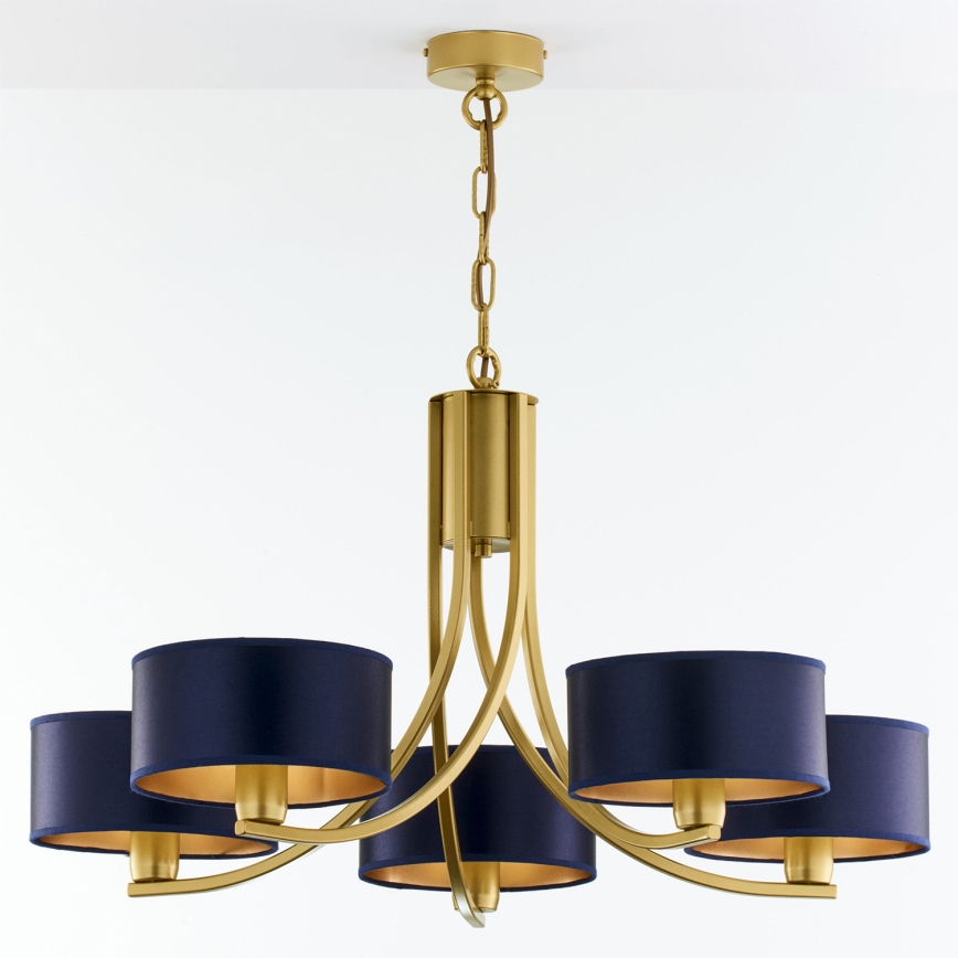 Jupiter 2094 - Ljuskrona på kedja ARTHUR 5xE27/15W/230V blå/guld kännetecknar snygg och funktionell design. En glödlampa med E27 lock är lämplig för lampan. Här kan du köpa andra glödlampor till förmånliga priser. Du kommer att få ett intressant tillägg till ditt hem.