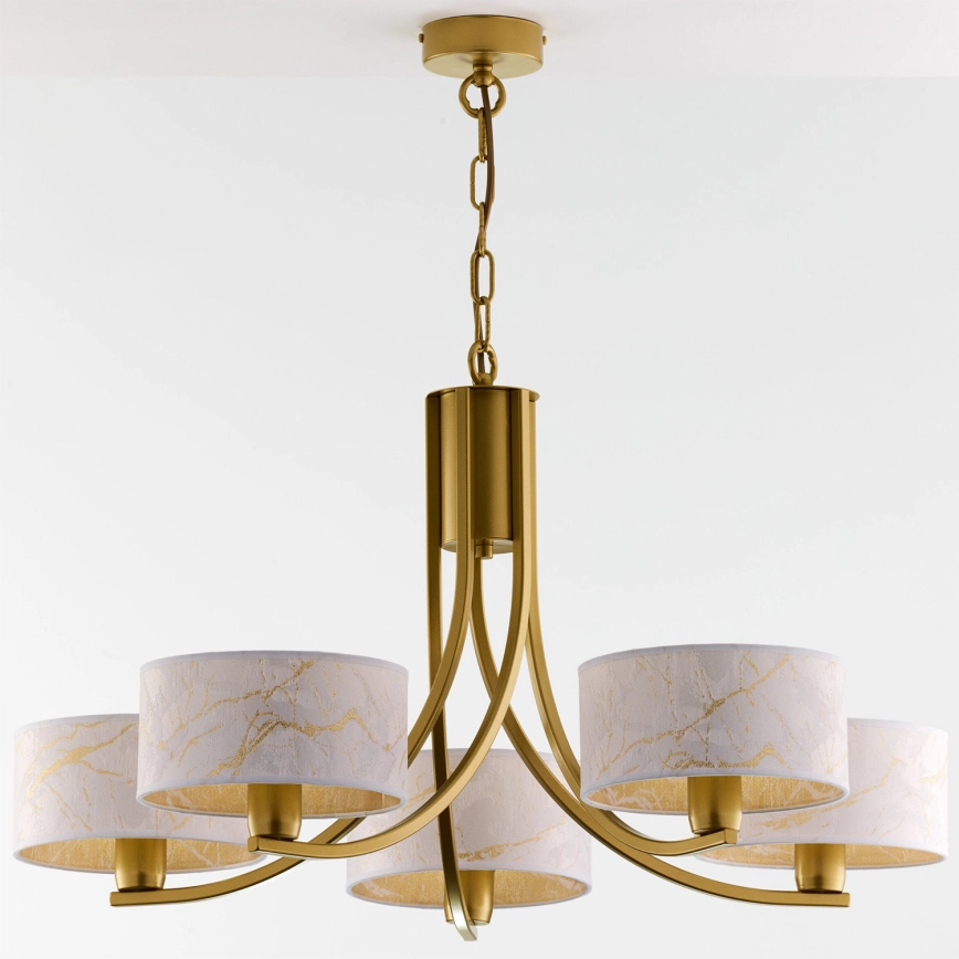 Jupiter 2097 - Kedjehängd ljuskrona ARTHUR 5xE27/15W/230V vit/guld/marmordekor | Lampmani