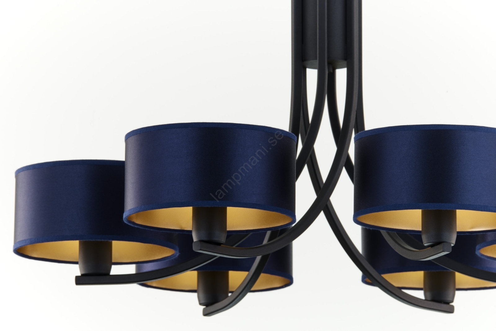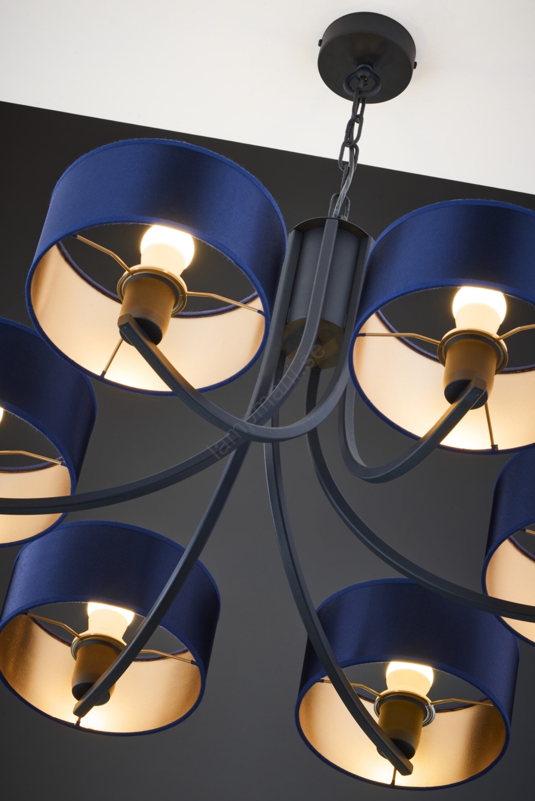 Jupiter 2102 - Taklampa med kedja ARTHUR 6xE27/15W/230V blå/svart | Lampmani