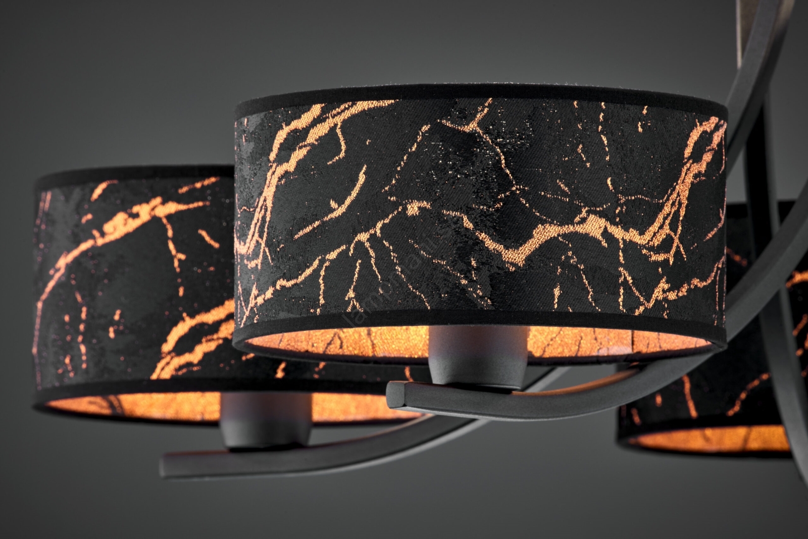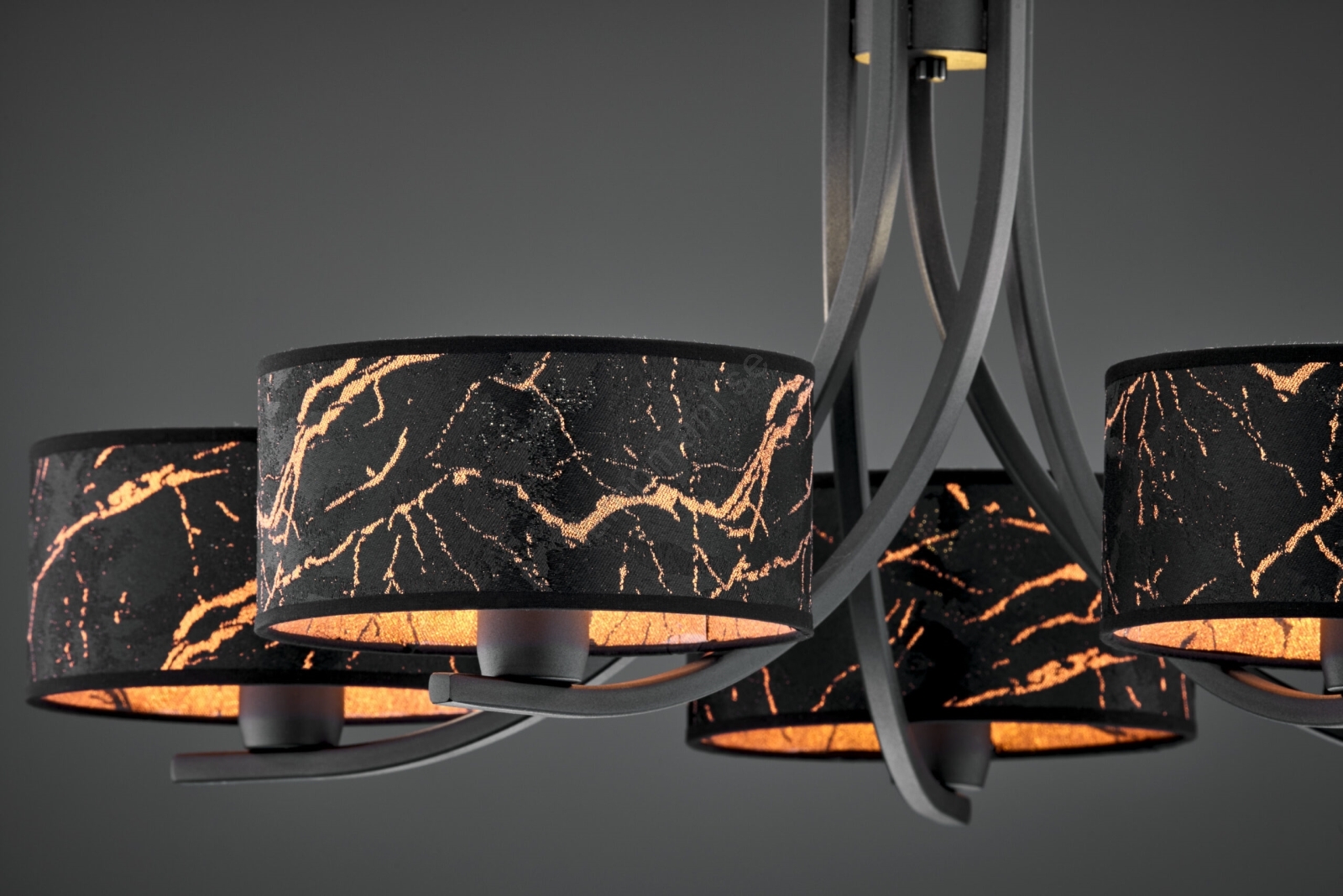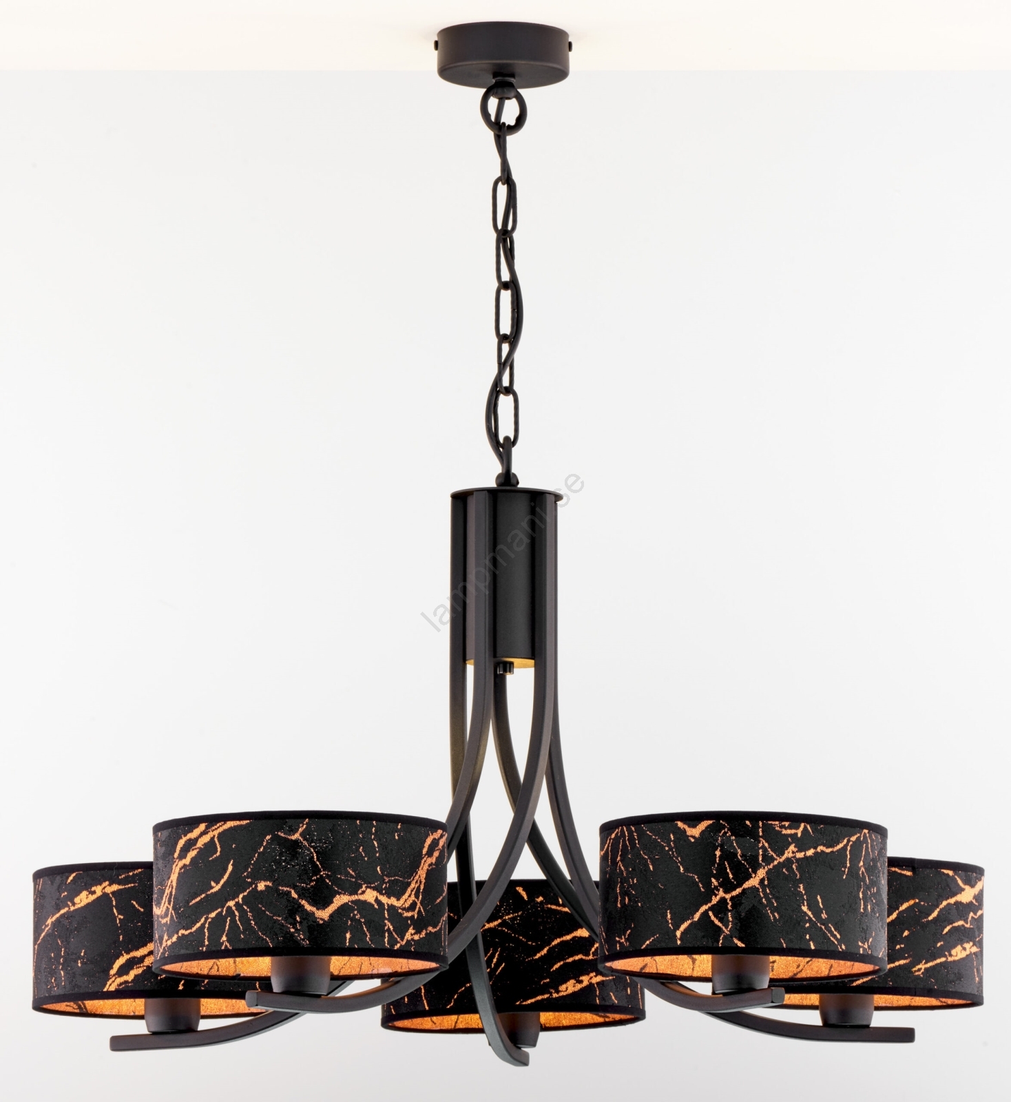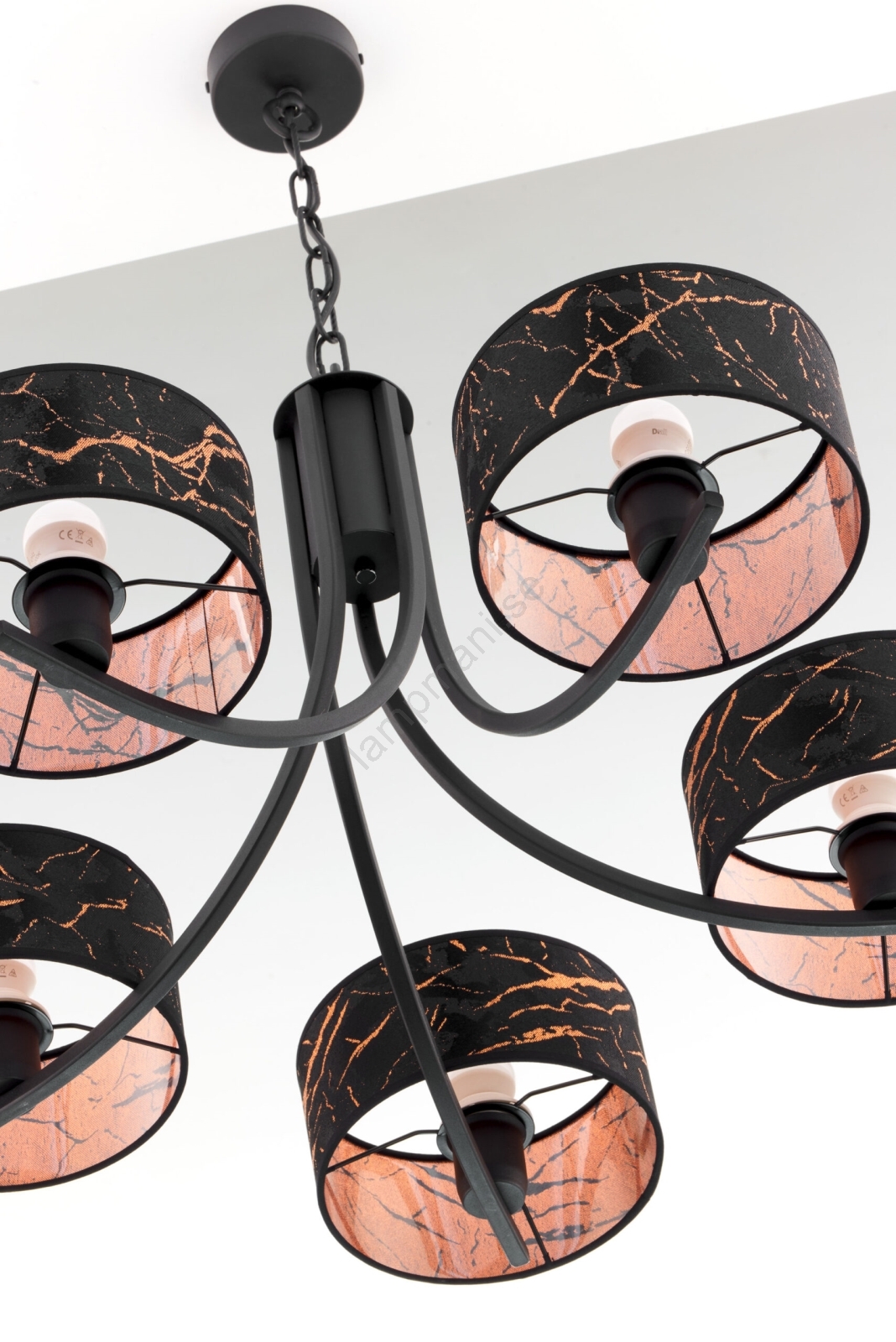 Jupiter 2107 - Taklampa med kedja ARTHUR 5xE27/15W/230V svart/orange/marmordekor | Lampmani