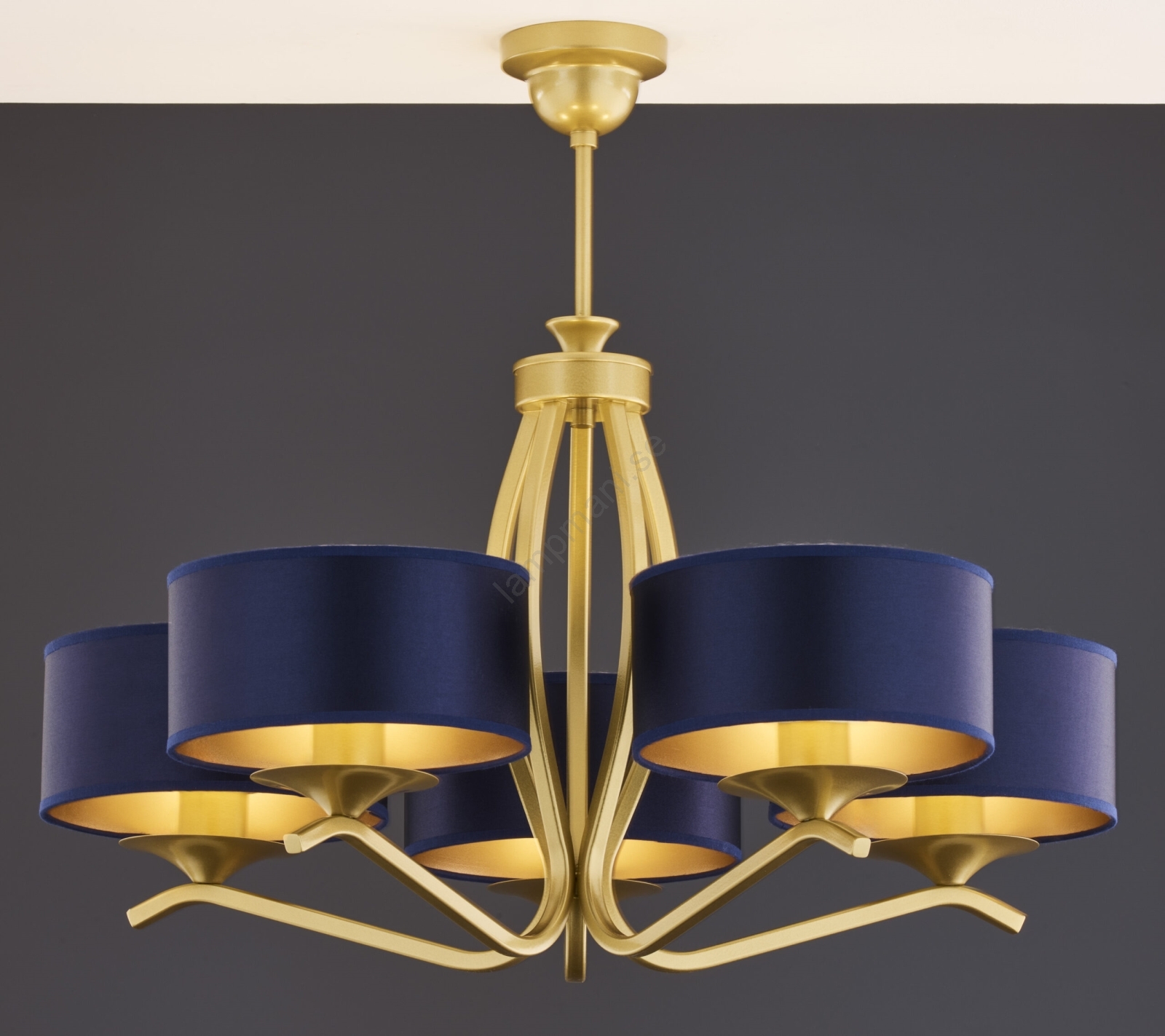 Jupiter 2114 - Stångmonterad taklampa KASZMIR 5xE27/15W/230V blå/guld kännetecknar snygg och funktionell design. En glödlampa med E27 lock är lämplig för lampan. Här kan du köpa andra glödlampor till förmånliga priser. Du kommer att få ett intressant tillägg till ditt hem.