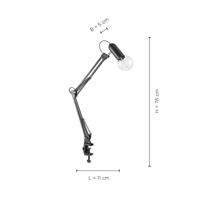 JUST LIGHT. 14773-18 - Bordslampa med klämma TURN ME 1xE27/60W/230V svart | Lampmani