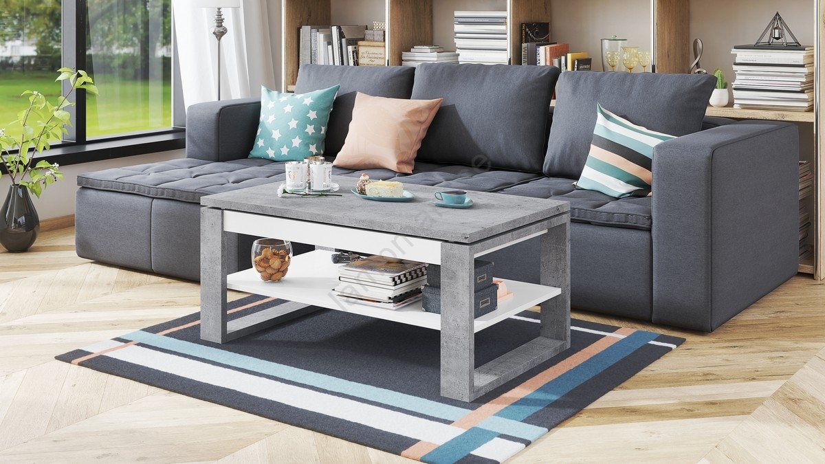 Soffbord med lyftbar skiva och hylla NEA betonggrå/vit | Lampmani