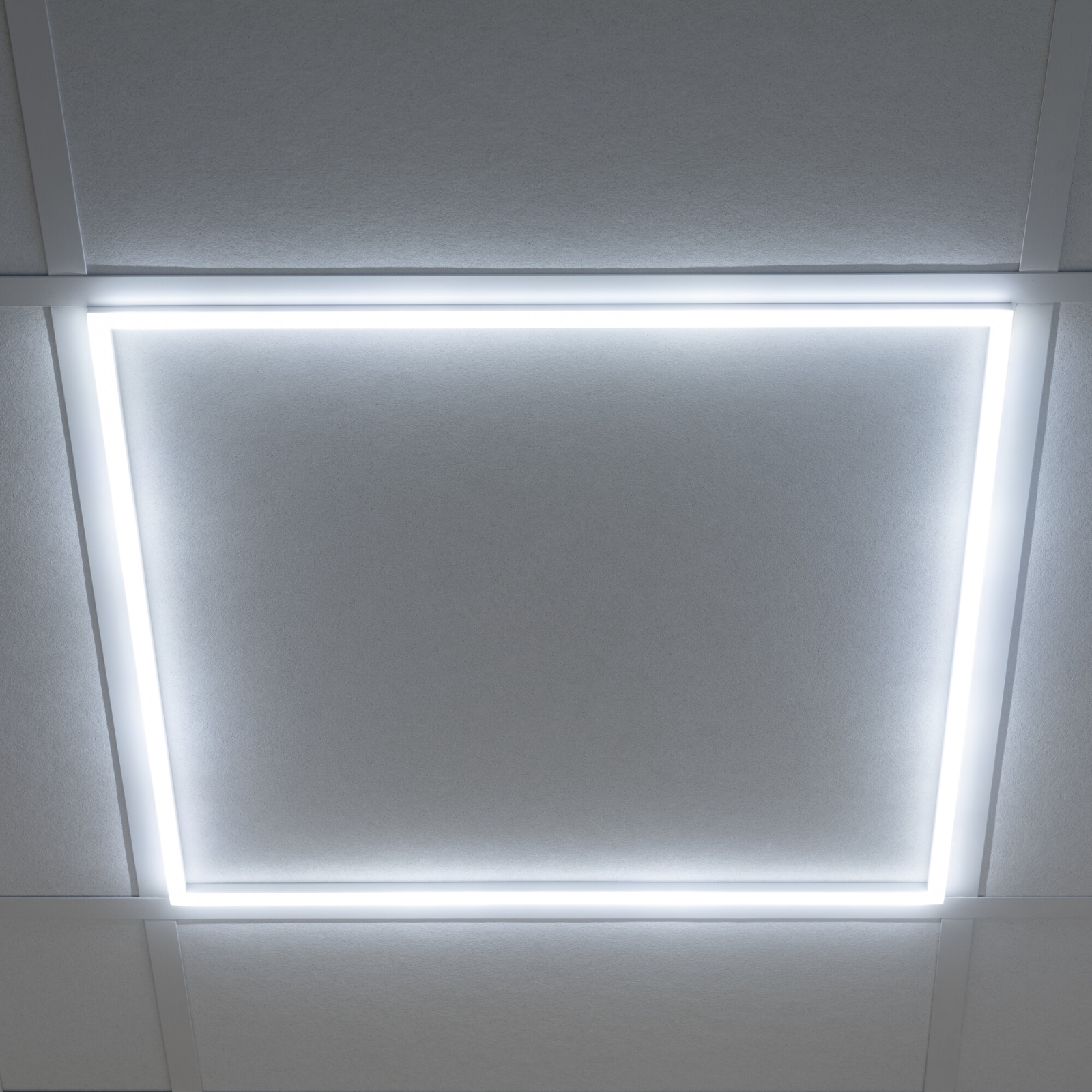 • Till skillnad från traditionella LED-paneler lyser den endast runt kanten och ger en diskret dekoration till alla kassettak.