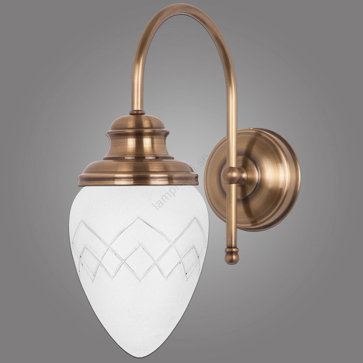 • Vägglampa i mässing med skärm av handslipat glas.