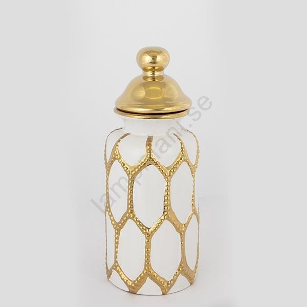 Keramisk burk 31x12,5 cm guld/vit | Lampmani