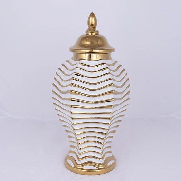 Keramisk burk 42,2x21,1 cm guld/vit | Lampmani