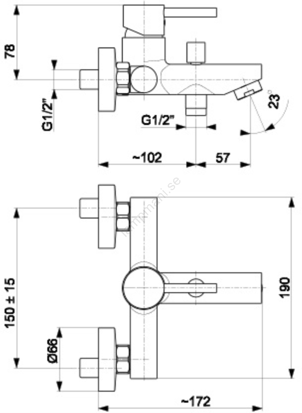 • Denna ettgrepps badkarsblandare är en elegant detalj i varje badrum.