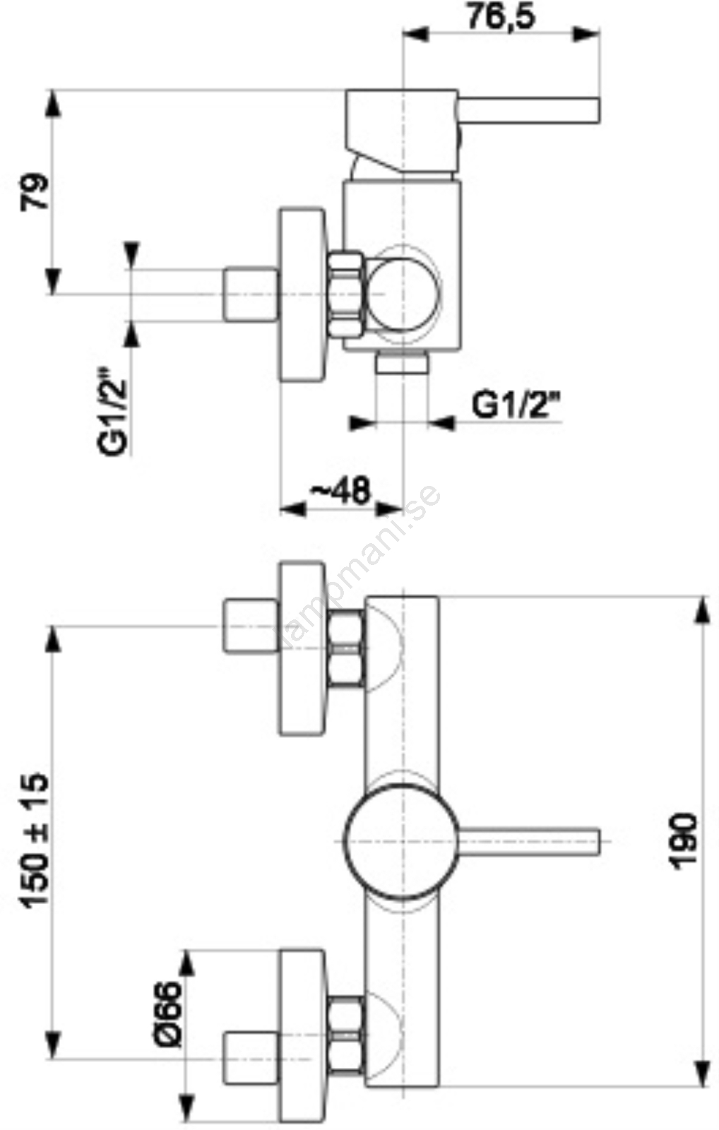 • Styrning: keramisk patron 35 mm.