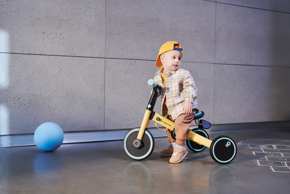 KINDERKRAFT - Balanscykel för barn 3i1 4TRIKE gul/mint | Lampmani