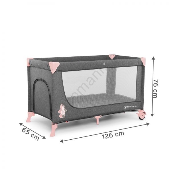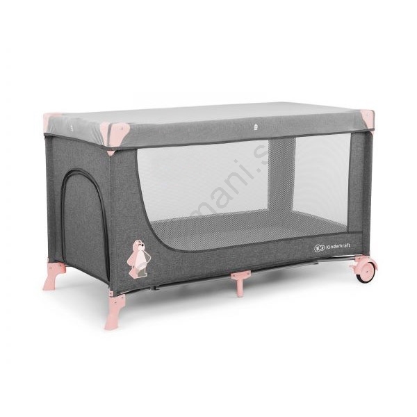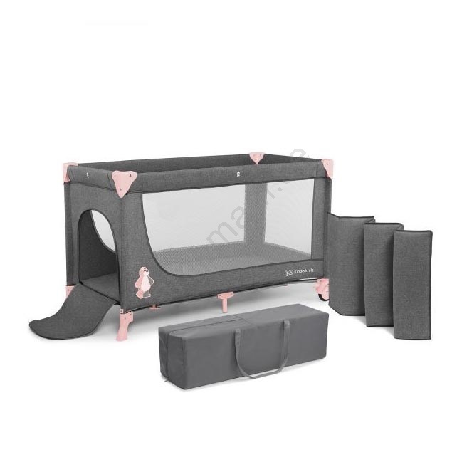 KINDERKRAFT JOY resesäng, grårosa, praktisk och smidig för resor | Lampmani