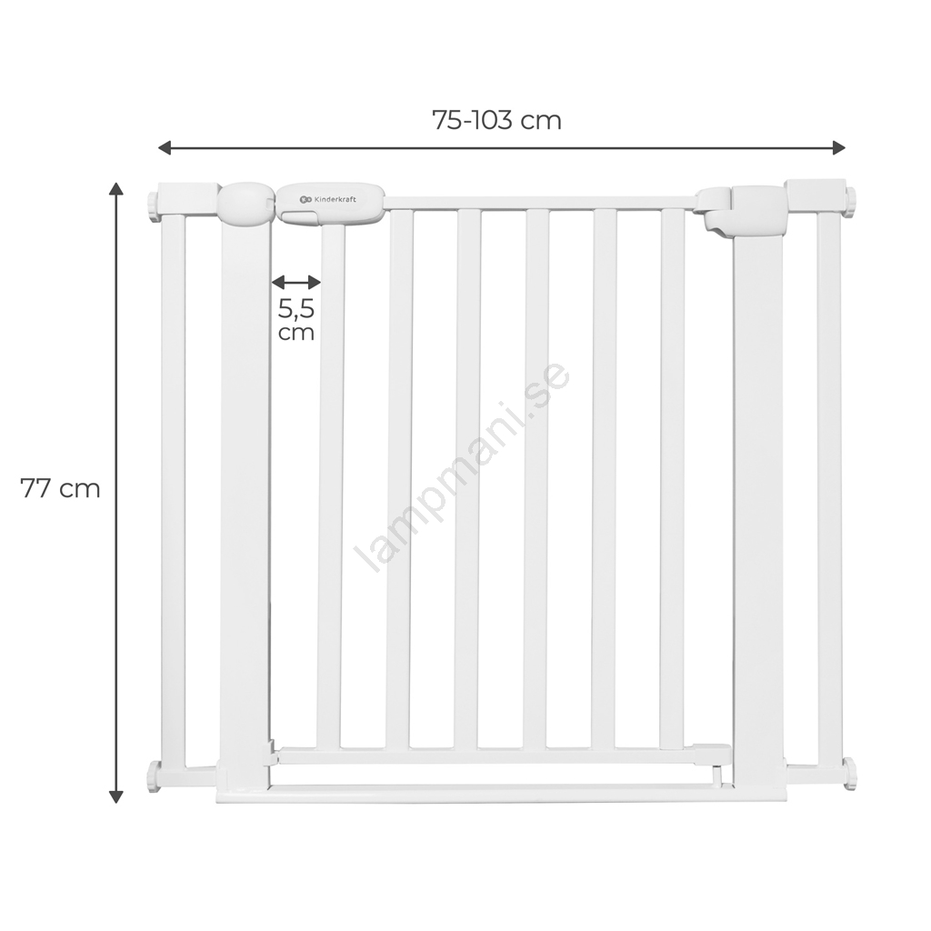 KINDERKRAFT - Säkerhetsbarriär LOCK&GO 75-103 cm vit | Lampmani