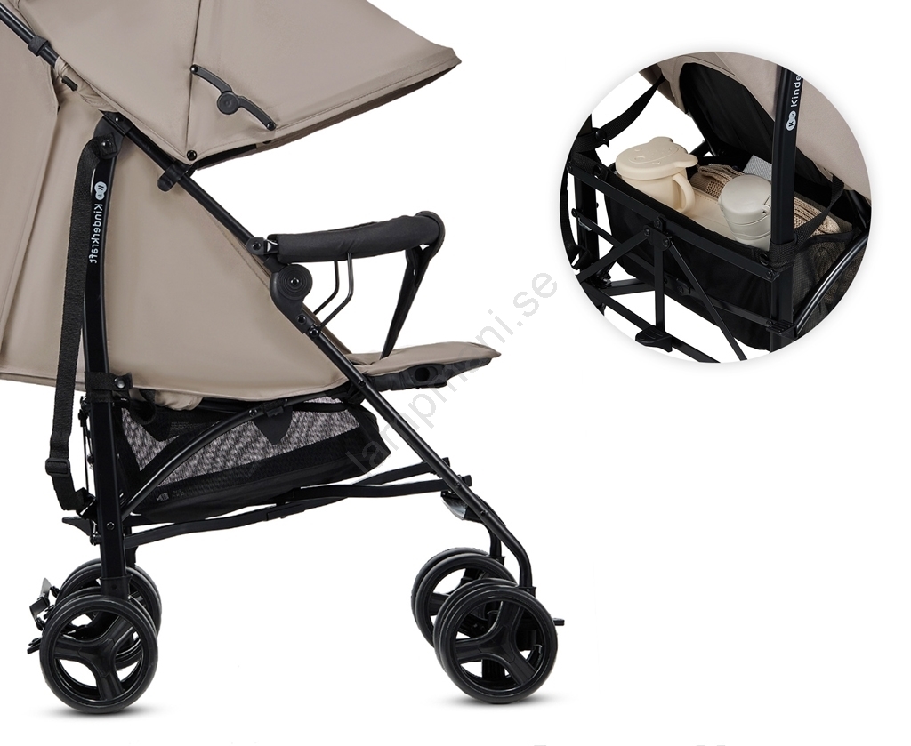 • Den praktiska korgen under sätet har en lastkapacitet på upp till 2 kg och är perfekt för shopping eller barnets tillbehör.
