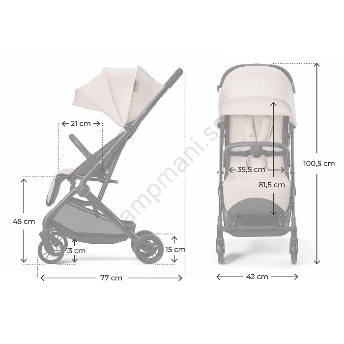 • Modern barnvagn som kombinerar kompakta mått, låg vikt och praktiska funktioner.