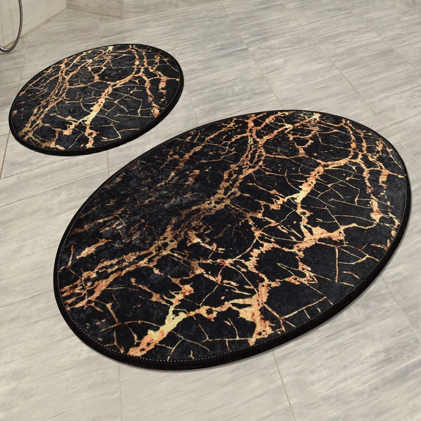SET 2x Badrumsmatta GOLDES 60/100 cm svart/guld