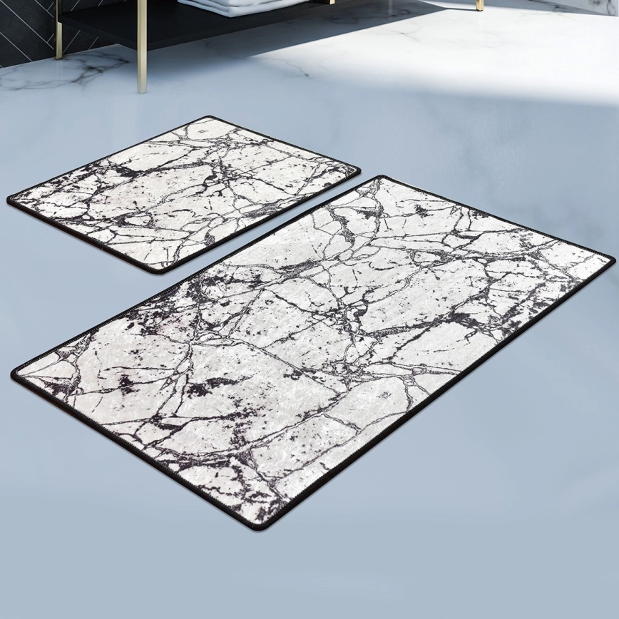 SET 2x Badrumsmatta MARBLE 60/100 cm vit/svart