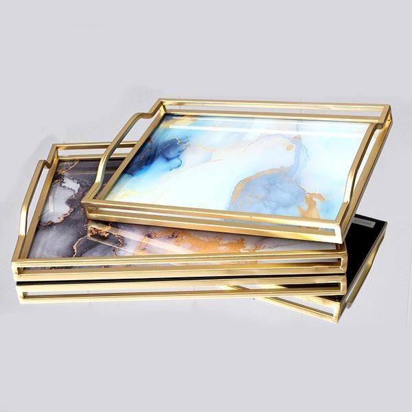 KIT 2x Dekorativt bricka 40x30/35x25 cm guld | Lampmani