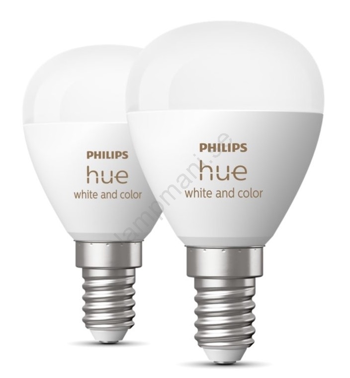 • Set med två Philips Hue White And Color Ambience-lampor med E14-sockel.