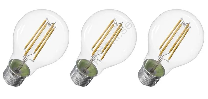 KIT 3x LED glödlampa FILAMENT A60 E27/5W/230V 4000K Energiklass A Kvalitetsdesign garanterar perfekt belysning av din interiör. Kategorin E27 är avsedd för glödlampor med samma sockel. Här kan du välja mellan traditionella glödlampor eller de många moderna LED-lamporna som är mer energieffektiva och har en längre livslängd.