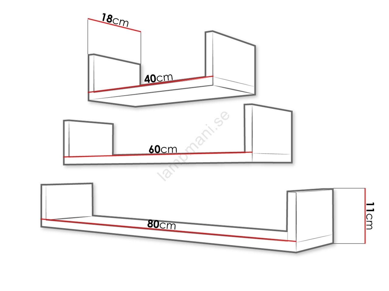 • Set med tre väggmonterade hyllor för att visa böcker, dekorationer och mycket mer.