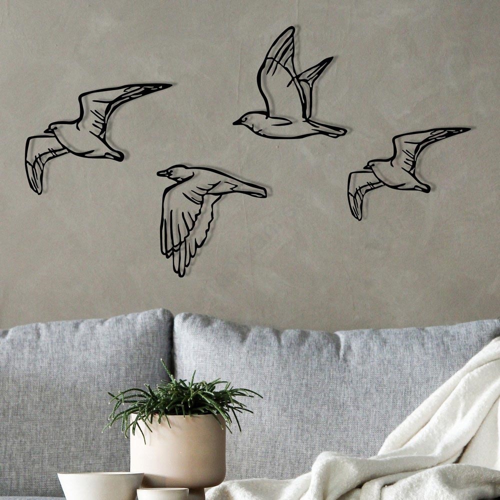 SET 4x Väggdekoration fåglar i metall | Lampmani