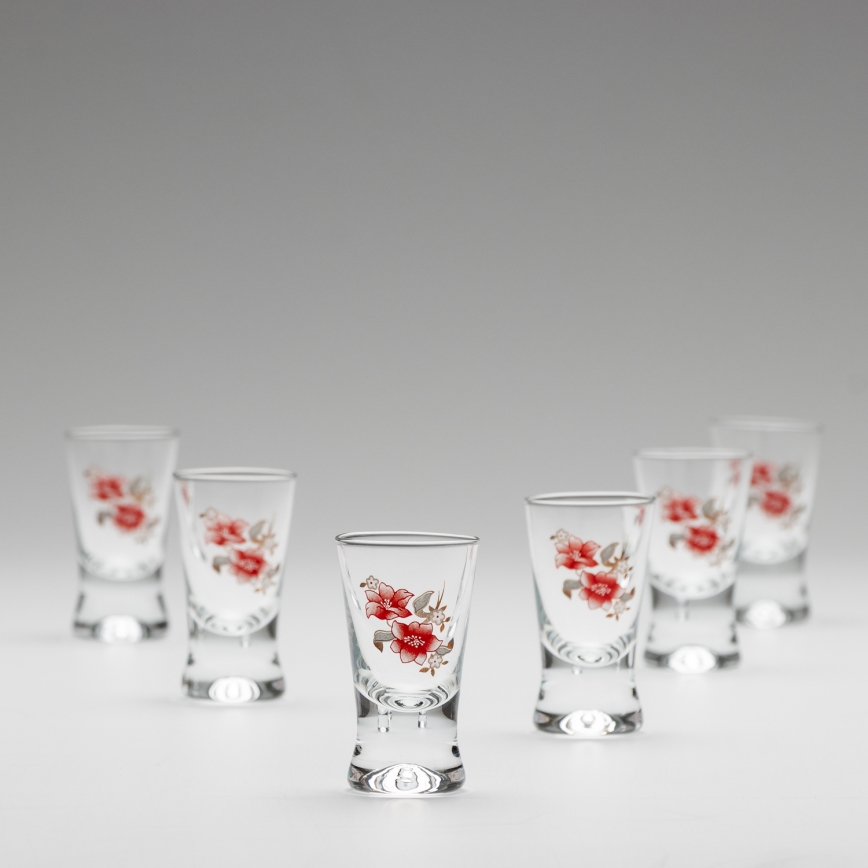 Kit 6x snappsglas genomskinlig med bukettmotiv nr. 2 | Lampmani