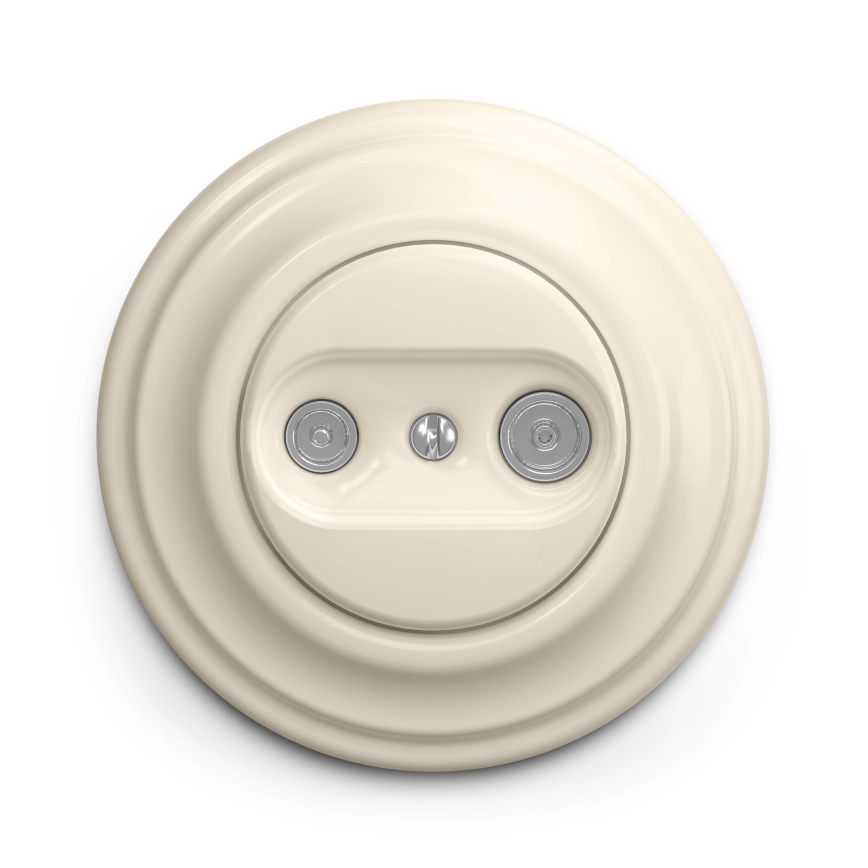 Kliklap - Retro antennvägguttag för TV och radio (genomgående) med ram, beige | Lampmani